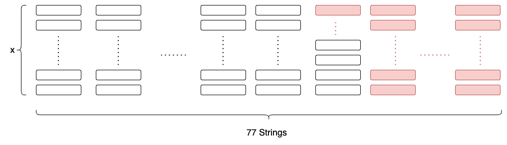 First, let $y$ be the number of coins in one string if we make $78$ strings.